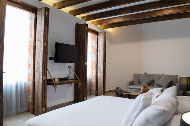 Contamos con 3 habitaciones Junior Suite con 32 m2 de superficie, con diseños diferentes entre ellas, provocan el deseo de cumplir nuestros más profundos caprichos, habitaciones amplias con tina de baño y ducha, todas nuestras Junior Suite cuentan con salida a dos balcones y vistas al Centro Histórico de nuestra hermosa ciudad colonial.